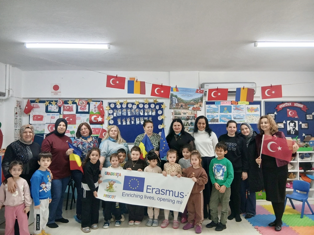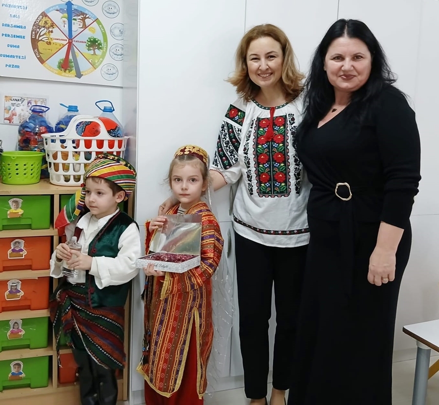 ‘Hayırlı Ramazanlar’ etkinliği kapsamında çocuklar, Romanyalı öğretmenlere anlamlı hediyeler hazırladı. Okul öncesi öğretmenleri ziyaretin son gününde, Ramazan Bayramı’ndaki bayramlaşma kültürünü yansıtan bir etkinlik düzenleyerek hediyeleşme ve vedalaşma programı gerçekleştirdi.