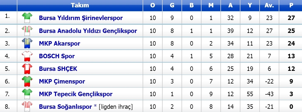 BURSA 2.KÜME 3.GRUP PUAN DURUMU