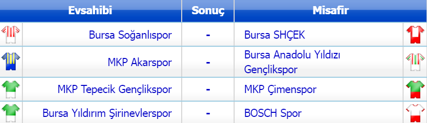 Bu hafta; Akar Gençlik-Bursa Anadolu Yıldızı, Tepecik-Çimen karşılaşmaları oynanacak.