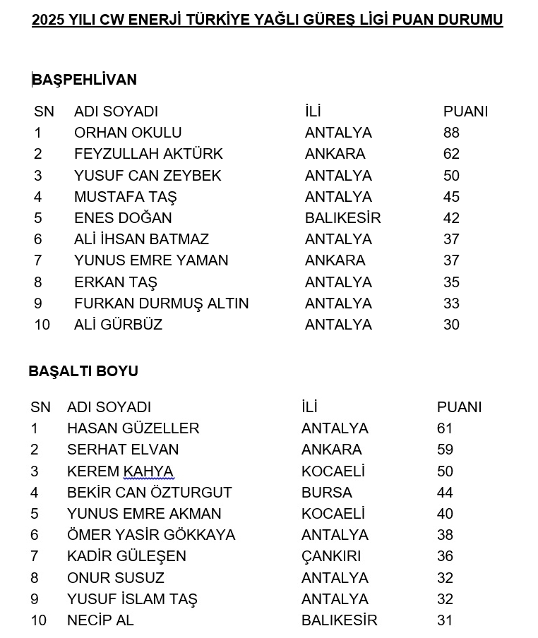 Güreş tutkunları bu büyük organizasyonu kaçırmamalı. Çünkü CW Enerji 7. ve son lig etabı Elmalı’da yapılacak. 2025 yılı lig şampiyonu ve 2026 yılı Edirne Kırkpınar’da güreşecek pehlivanlar belirlenecek. Tarihin ve sporun buluştuğu bu büyük organizasyonda yerimi alıp, pehlivanların kıyasıya mücadelesine tanık olmak, bu heyecana ortak olmak için Türk’ün ilk er meydanı Tarihi Elmalı Yağlı Pehlivan Güreşleri’ne 5 günümü ayırdım.