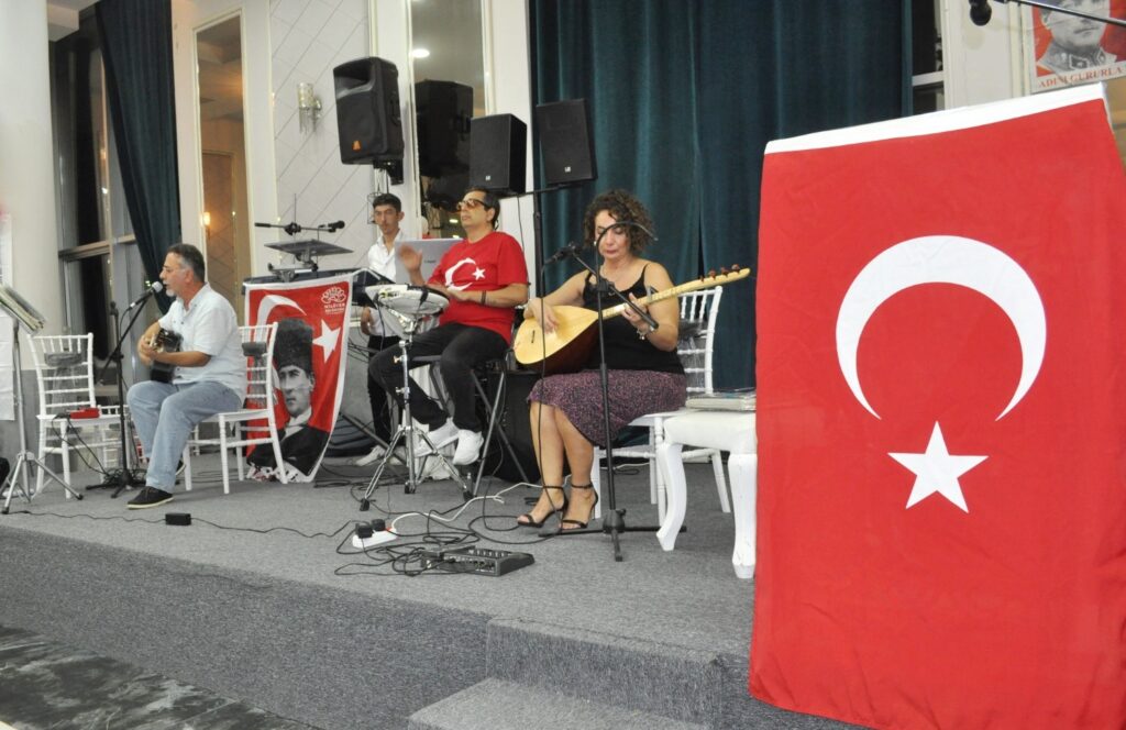 Müzik dinletilerinin yanı sıra hep birlikte marşların söylendiği gecede plaket töreni yapılırken katılımcılar, Cumhuriyet’in 100. yıl coşkusunu doyasıya yaşadı.