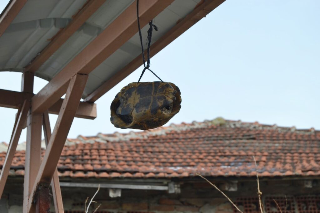 Avlu giriş kapısında kaplumbağa kabukları asılı idi. Nazar için asıldığı söylendi. Bazı evlerde delikli taşların da asıldığı söylendi. 84 yaşındaki Sakine Turgut da eski geleneklerden konuştu. Eski gelin alıcılar, bebek doğumları, düğünlerden, düğünlerde hediyeleşmelerden söz etti.