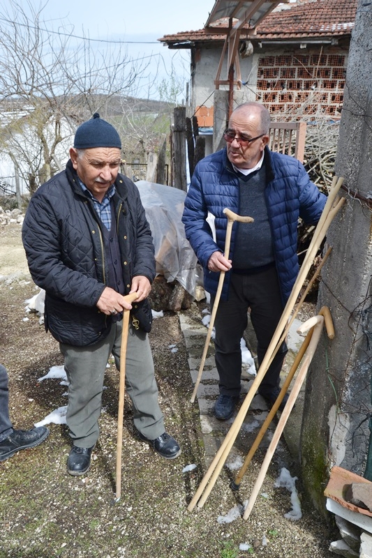 Celal Akman boş zamanında kızılcık ağacından baston yapıyor, yaşlılara hediye ediyor.