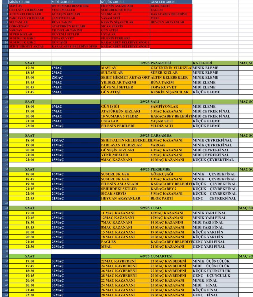• Voleybol severler için heyecan, bu akşam yapılacak ilk maçlarla başlayacak. Geçtiğimiz yıllarda büyük ilgi gören organizasyona bu yıl da katılım yoğun olacak.