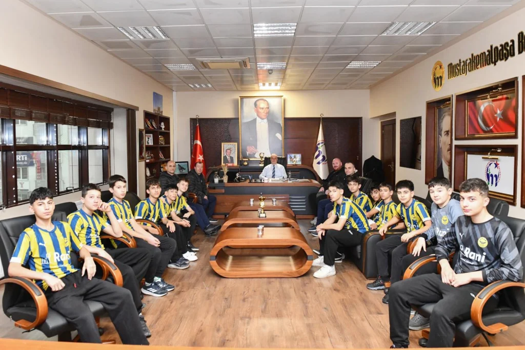 Mustafakemalpaşa Akar Spor Kulübü’nün şampiyon U-14 Futbol Takımı, Belediye Başkanı Şükrü Erdem’i makamında ziyaret etti.