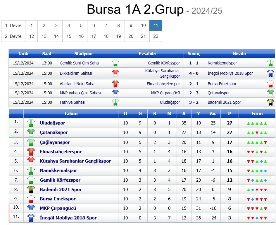 Zirve mücadelesi veren Çotanak’ı ağırlayan mavi-beyazlı takım, sahadan 3-2’lik skorla boynu bükük ayrıldı. 11 takımlı grupta 6 puanla 10. sırada yer alan Çırpan, 2 galibiyet ve 8 yenilgi alırken, 15 gol atıp, kalesinde 31 gol gördü. Çırpan, 12. haftada Bursa Emekspor’u konuk edecek.