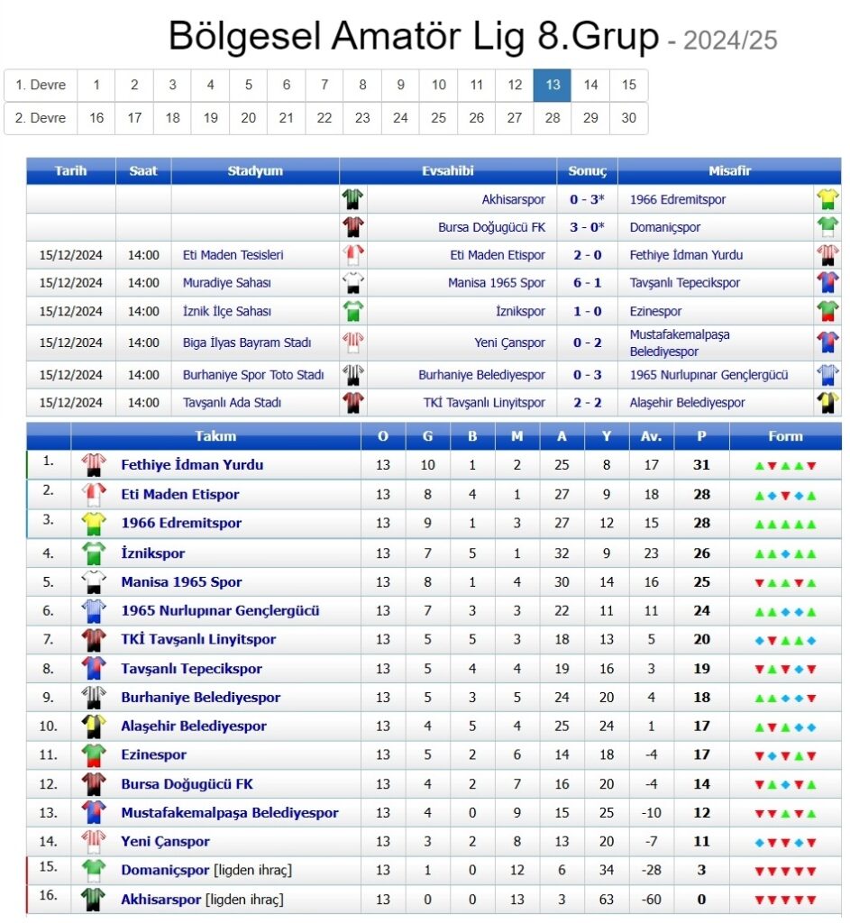 16 takımlı grupta Akhisar ve Domaniç’in ligden ihraç edilmesinin ardından puanını 12 yapan Mustafakemalpaşa temsilcisi, 13. sıraya yükseldi. 4 galibiyet ve 9 yenilgisi bulunan kırmızı-lacivertli takım, 14. haftada Burhaniye Belediyespor’u misafir edecek.