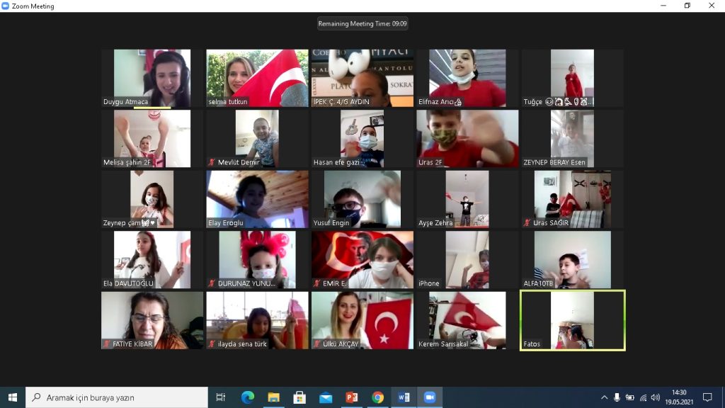 Pandemi sürecinde uzaktan eğitimin bir parçası haline gelen zoom uygulaması üzerinden bir araya gelen ‘Atatürk’ün İzinde’ e-twinning proje ekibi, öğrencilerinde eşlik ettiği özel bir programla 19 Mayıs’ı kutladı.