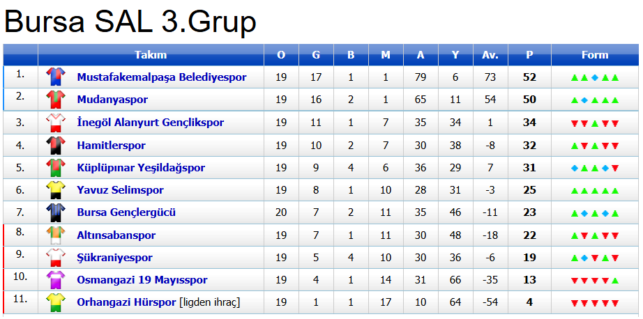 11 takımın yer aldığı 3. Grup’ta 22. haftaya 52 puanla lider Belediye Mustafakemalpaşaspor, normal sezonun son maçında ligden düşmesi kesinleşen Şükraniyespor’u ağırlayacak. Sezonun ilk yarısında rakibini 3-0 yenen Kırmızı Şimşekler’in prestij için sahaya çıkacağı mücadele 8 Mart Pazar günü saat 15.00’te oynanacak.
