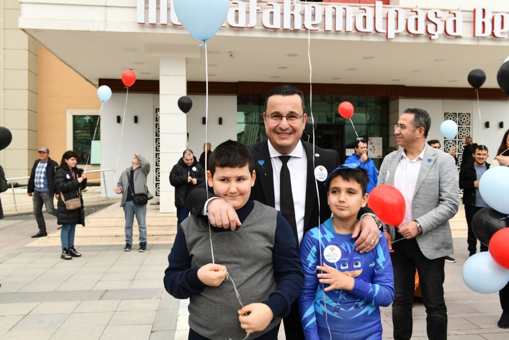 Mustafakemalpaşa’da 2 Nisan Dünya Otizm Farkındalık Günü kutlamalarında, umudun rengi kırmızı, otizmin rengi mavi ve deprem bölgesindeki çocuklar için siyah balonlar gökyüzüne salındı.