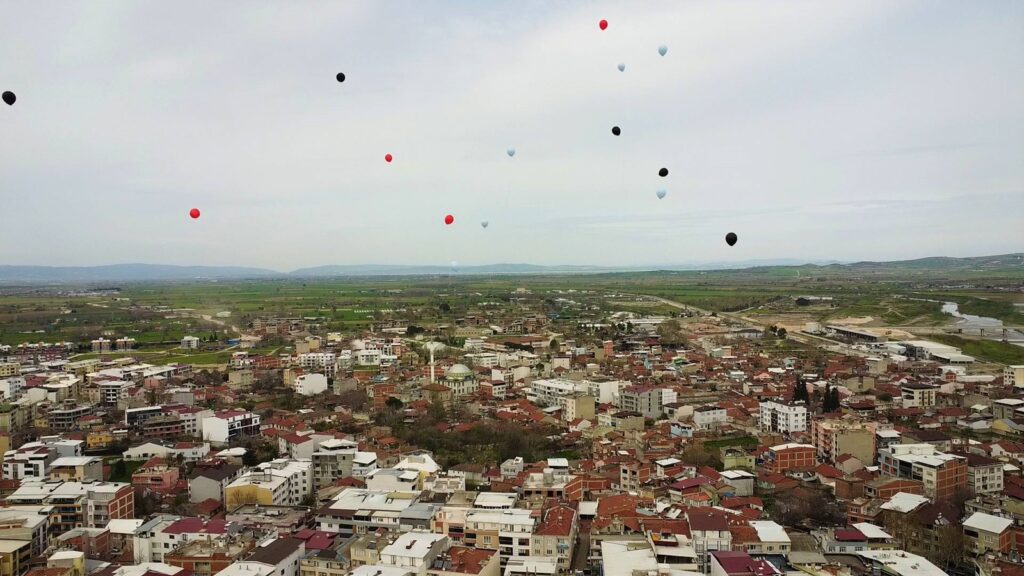 Deprem bölgesi Hatay’daki görevinin ardından dönüş yapan Mustafakemalpaşa Belediye Başkanı Mehmet Kanar, mavi, kırmızı ve siyah renkli balonların görsel bir şölen oluşturduğu programda; “Gökyüzüne gönderdiğimiz her bir balon deprem bölgemize bereket olsun” ifadelerini kullandı.