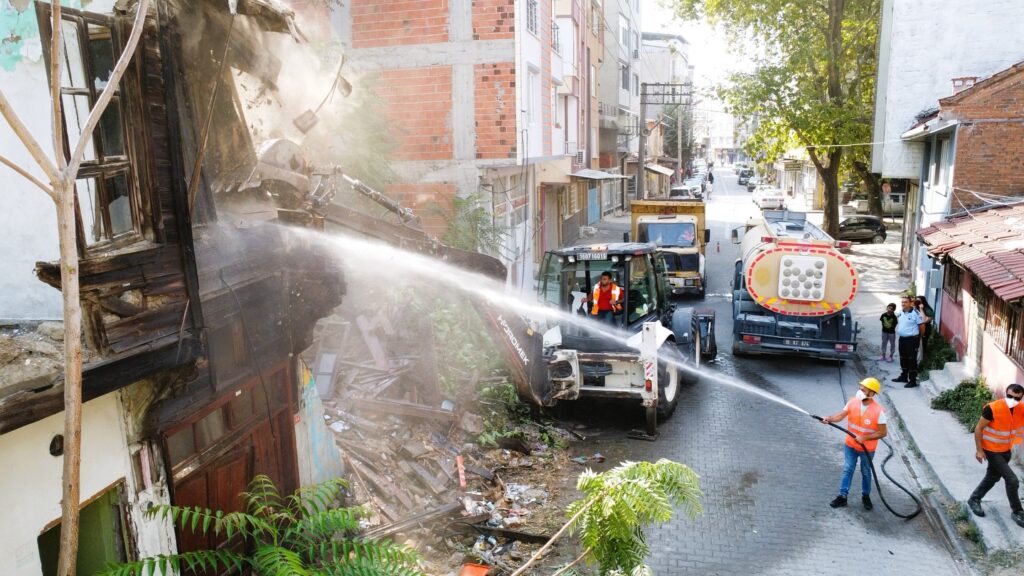 Vatandaşlardan gelen yoğun talepleri dikkate alan yerel yönetim, can ve mal güvenliğini tehlikeye düşüren yapılarla ilgili hukuki süreçlerin tamamlanmasının ardından eski binalar üzerinde yıkım işlemlerini sürdürüyor. Yıkım esansında çevreye zarar verilmemesi için tüm tedbirleri alan ekipler, son olarak Dere Mahalle Karaoğlan Caddesi üzerinde 2 katlı metruk bir binayı yıktı.
