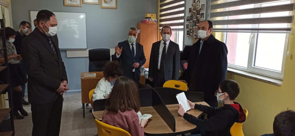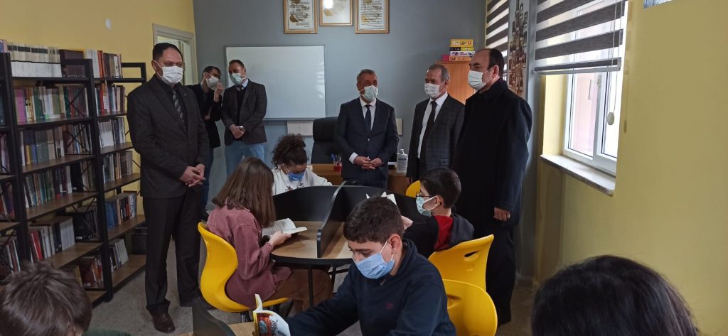 Açılışın ardından Kaymakam Ahmet Altıntaş ve Milli Eğitim Müdürü  Mustafa Efe kütüphaneyi gezerek öğrencilerle sohbet etti.