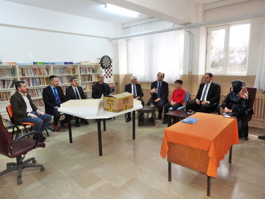 Milli Eğitim Müdürü Veysel Çalık, Şube Müdürü Mehmet Sabri Tekin, HOTKOP Başkanı Varol Üregen ve Hüseyin Tunçer’in de eşlik ettiği ziyarette Kaymakam Altıntaş, kitap kurdu öğrencinin ağzından okuma serüvenini dinledi.