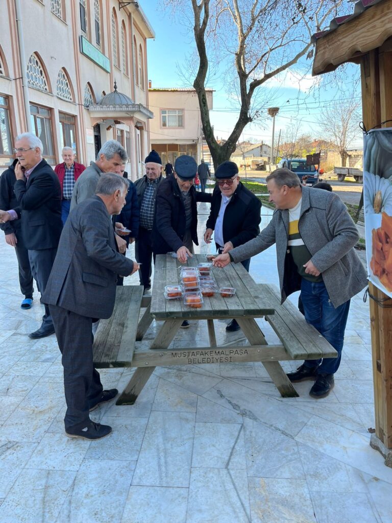 Cuma namazından önce camide Kur’an-ı Kerim ve Mevlit-i Şerif okundu. Cuma namazı çıkışı tüm cemaate, meydanda her Cuma günü kurulan pazar esnafına, çevre köylerden gelenlere özel olarak 400 adet paketlenip hazırlanmış cevizli Bal Kabağı tatlısı ikram edildi.