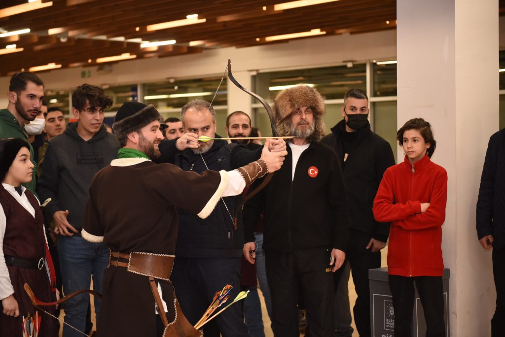 Etkinlik alanını gezip, gönüllülerle sohbet eden Başkan Aktaş, ok atma etkinliğinde de hünerlerini sergiledi.