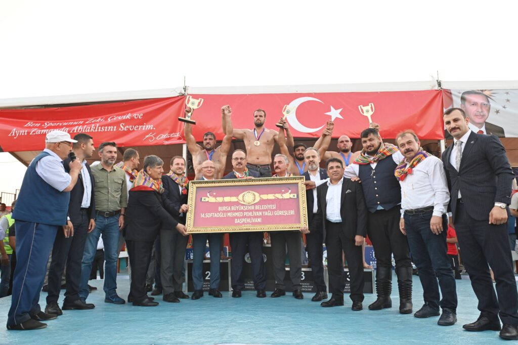 Bu arada 14. Softaoğlu Mehmed Pehlivan Güreşlerinin Güreş Ağası Zeki Acar, önümüzdeki yıl yapılacak güneşlerin de Güneş Ağası oldu ve kupasını Büyükşehir Belediye Başkanı Alinur Aktaş’ın elinden aldı.
