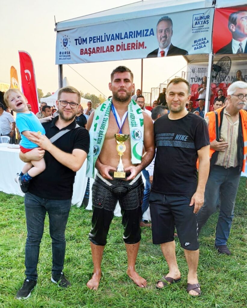 Bursa Büyükşehir Belediyesi tarafından düzenlenen 14. Softaoğlu Mehmed Pehlivan Yağlı Güreşleri’ne baş altı boyunda katılan Mustafakemalpaşalı pehlivan Okan Yavaş, şampiyonluk kürsüsüne çıktı.