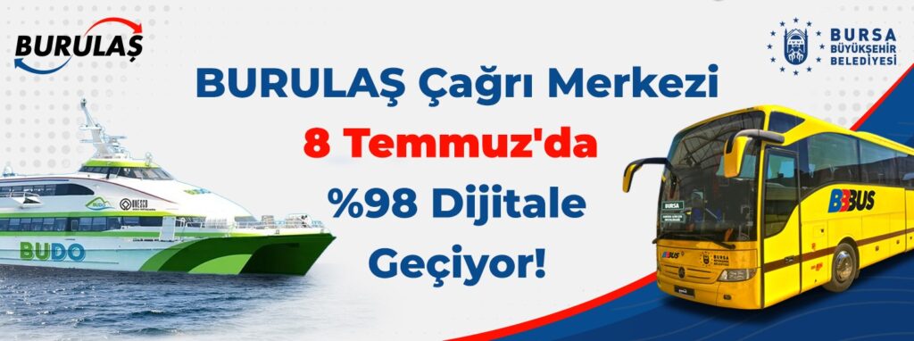 Bursa’da raylı sistem ve otobüslerle şehir içi, BUDO VE BBBUS ile de şehirler arası toplu taşıma hizmeti veren BURULAŞ, vatandaşa daha hızlı ve kaliteli hizmet sunmak için dijital dönüşüme ayak uyduruyor. Yüzde 66’sı bilgi edinme, yüzde 16’sı şikayet ve öneri, yüzde 14’ü bilet satışı ve yüzde 3’ü taleplerden oluşan ve günde 1500 civarında birebir canlı görüşmenin gerçekleştirildiği BURULAŞ Çağrı Merkezi, hizmetlerinin yüzde 98’ini dijital kanallara taşımaya hazırlanıyor. Daha önce şehir dışında olan çağrı merkezi lokasyonu Bursa’ya taşınırken, Dijital Çağrı Merkezi uygulaması 8 Temmuz’da başlayacak.