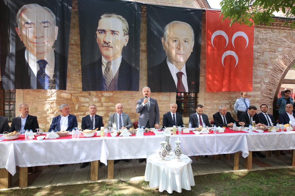 Toplantıda konuşan Bursa Milletvekili Dr. Mustafa Hidayet Vahapoğlu; “Bizlere soruyorlar ‘neden ittifak yaptınız’ diye, açıklayayım. Tehlikeyi bozan iki lider vardı. Biri Genel Başkanımız liderimiz Devlet Bahçeli diğeri de Cumhurbaşkanımız Recep Tayyip Erdoğan’dır. Diğerleri ne yazık ki piyasada yoktular. Benim partimin ve hareketimin lideri Devlet Bahçeli, seçilmiş ve demokratik yollarla hükümeti ve devleti yönetmekte olan iktidarın yanındayız tavrıyla dengeyi tamamen bozdu. Cumhurbaşkanı vatandaşı sokağa çağıran ve dik duran tavrıyla başarılı oldu. Eğer Allah korusun başarılı olsalar idi 70 bin PKK’lı güneyden giriyordu. Türkiye işgale uğruyordu. Yunan’ın ne yapacağı belli değildi. Bize çok sık soruyorlar hangi Genel Müdürlüğü aldınız? Biz pazarlık yapmadık, genel müdürlük almadık. Hangi Bakanlığı aldınız? Almadık, siyaset menfaat işi değildir. Biz karşılıksız mevcut iktidarı destekledik, desteklemeye de devam edeceğiz” diye konuştu.
