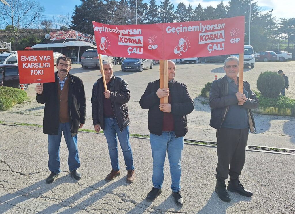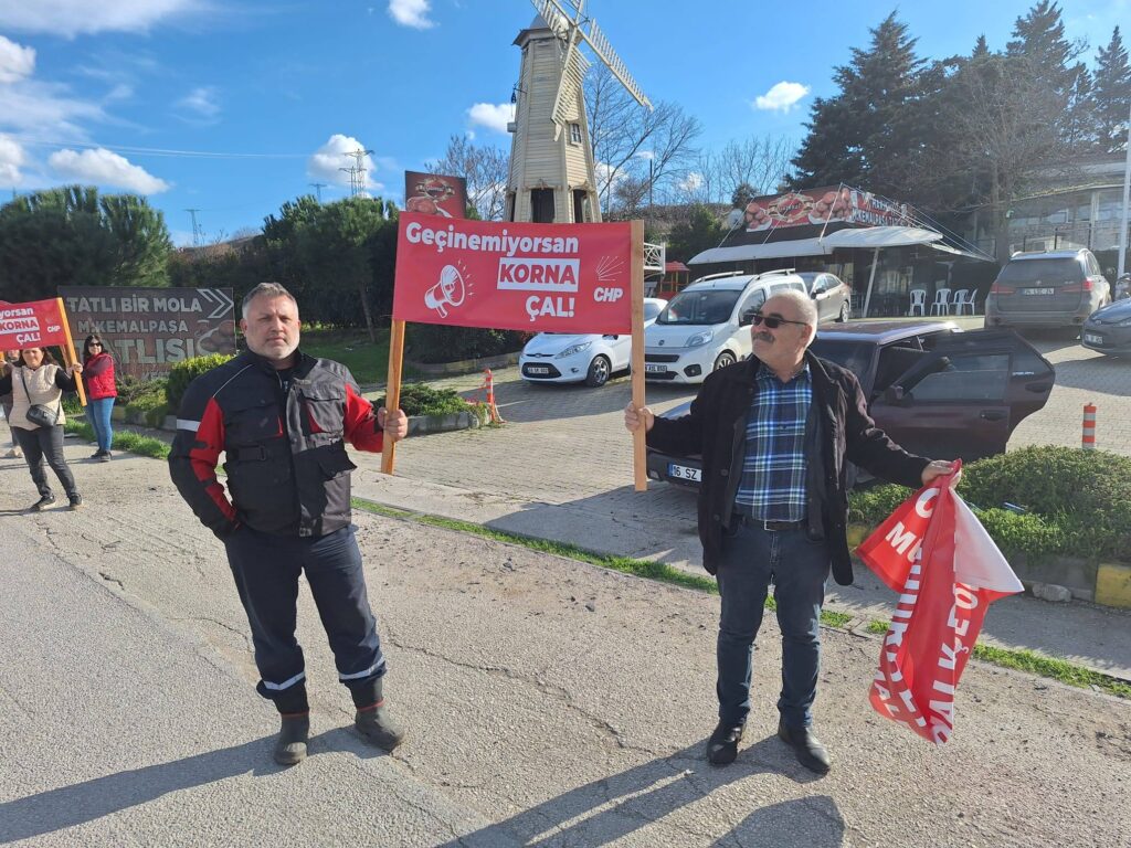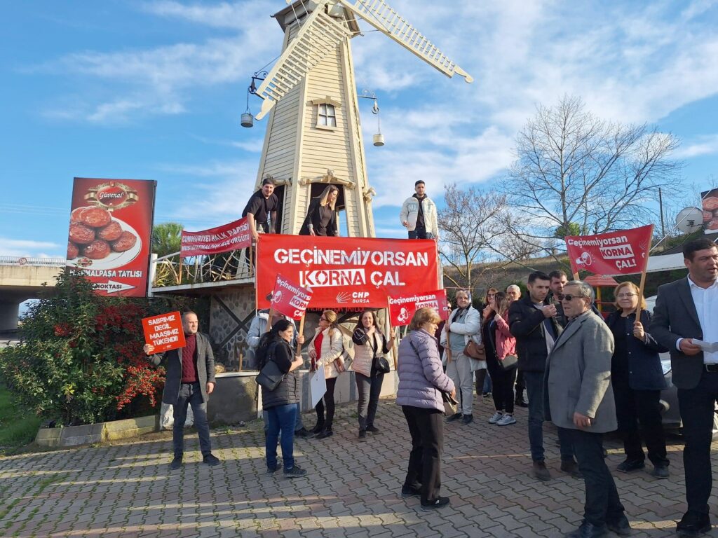 Bursa genelinde bugün eş zamanlı olarak yapılan ‘Geçinemiyorsan Korna Çal’ eyleminin Mustafakemalpaşa’daki adresi, İzmir-Bursa Karayolu oldu. Üçkurnalı Mevkii Has Bahçe Düğün Salonu önünde bir araya gelen CHP’liler, hayat pahalılığına karşı tepkilerini kornalarıyla dile getirdi.