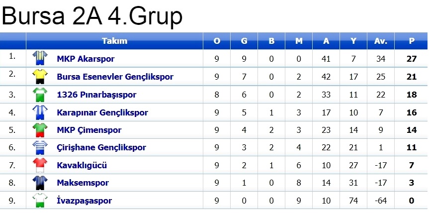 9 takımlı grupta yenilgisiz liderliğini sürdüren akar Spor, sezonun ilk maçında 6-3 yendiği Çirişhane Gençlik Spor’a rövanşı vermedi. Bursa deplasmanından Lütfi (3) ve Burak’ın golleriyle 4-0 galip ayrılan sarı lacivertli takım, puanını 27’ye yükselterek zirvedeki yerini korudu.