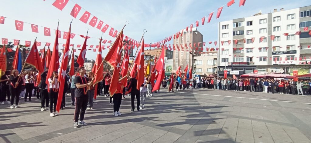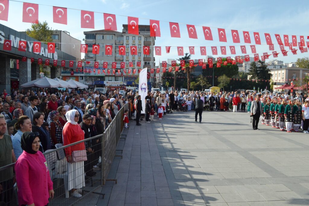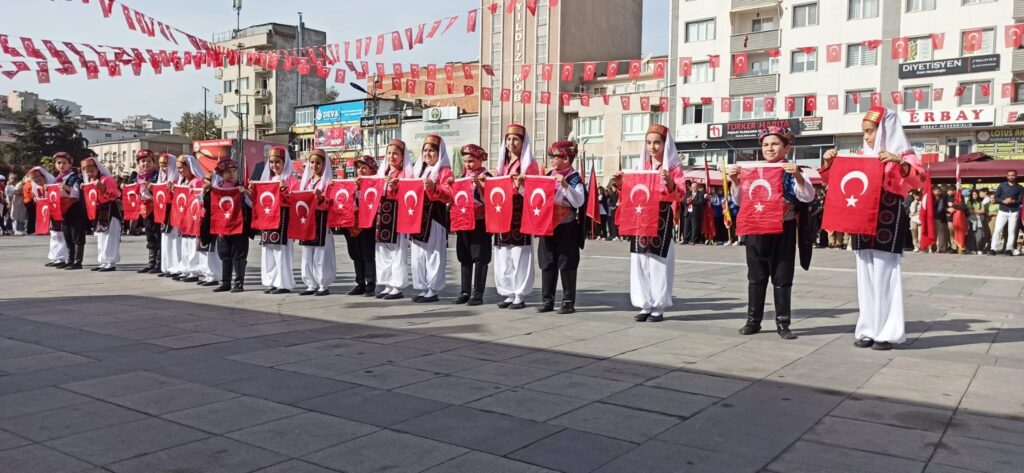 29 Ekim Cumhuriyet Bayramı kutlamaları kapsamında okullar arasında düzenlenen kompozisyon ve şiir yarışmalarda dereceye giren öğrencilerin eserlerini okumasıyla devam eden programda, Nilüfer Hatun MTAL öğrencileri halk oyunları gösterilerini sundu.