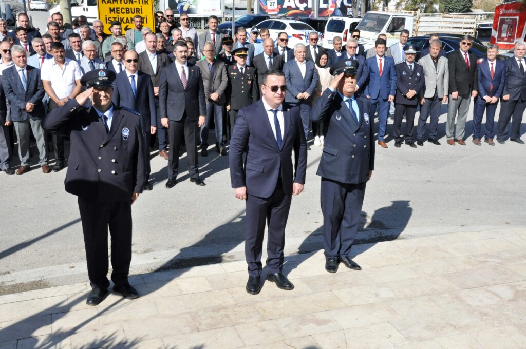 Mustafakemalpaşa’da 29 Ekim Cumhuriyet Bayramı’nın 100. yıl dönümü kutlamaları, çelenk sunma töreniyle başladı.