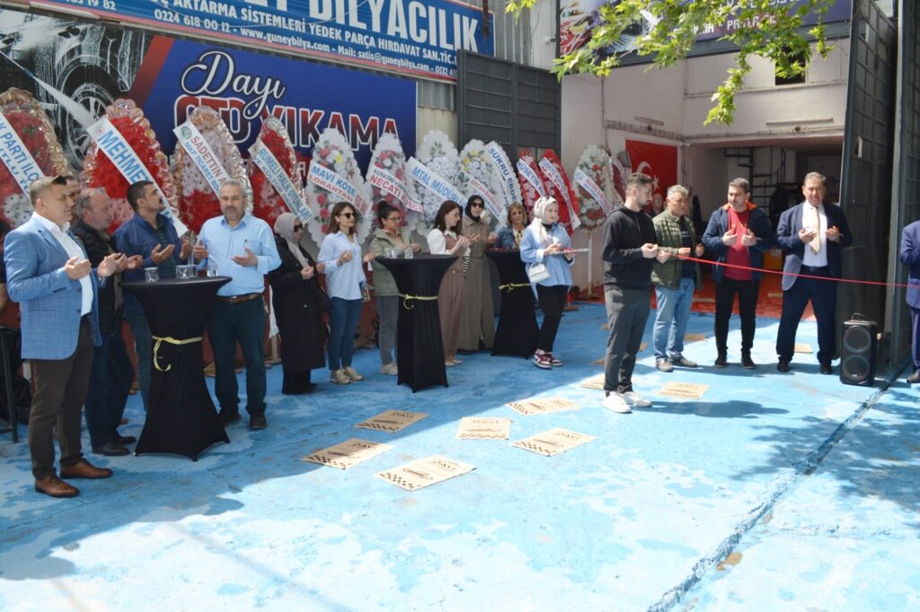 Küçük Sanayi Sitesi 70 No’lu Sokak’ta faaliyetlerine başlayan işyerinin açılışı, önceki dönem Mustafakemalpaşa belediye başkanları Sadi Kurtulan ve Mehmet Kanar, AK Parti Başkanı Mutlu Turgut, AK Parti Bursa yöneticisi Yiğit Alp Yıldırım, Ticaret Borsası Yönetim Kurulu Başkanı Sadettin Akkoyunlu, Vergi Dairesi Müdürü Yunis Akkoyun, AK Parti Meclis Üyesi Arif Kamil Özen, AK Parti Kadın Kolları Başkanı Melek Karaibik, STK temsilcilerinin katılımıyla yapıldı.