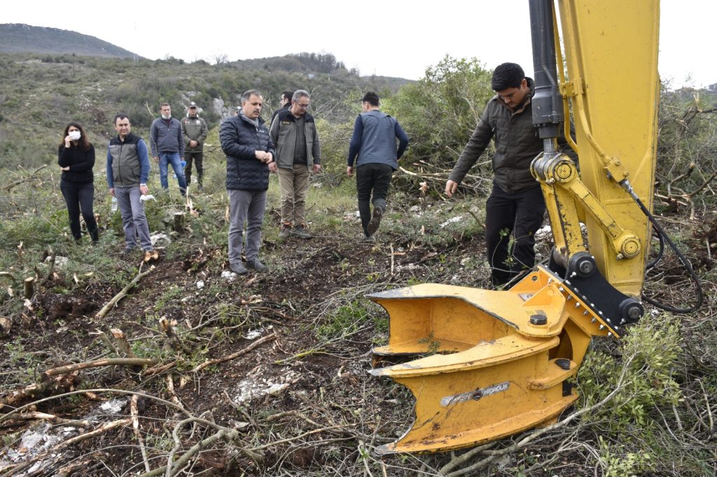 Atıl vaziyette bulunan 10.000 hektar potansiyel defne alanlarının iyileştirilmesi ile birlikte 2023 yılında Bursa’da 34 bin ton defne yaprağı üretilebileceği bildirilen açıklamada; “Bu sebeple 2018 yılından bu yana işgücü ile 4 bin hektar iyileştirme yapılarak, yolu olmayan yerlere 78 km yeni yol inşa çalışması tamamlandı. Ancak işgücünün yetersiz kaldığı, boylu ve yoğun makilik alanlarda defneye avantaj sağlamak amacıyla özel aparata ihtiyaç duyuldu. 2 aylık çalışma sonucunda ekskavatöre takılan hidrolik sistemli özel aparat geliştirilerek hizmete alındı. Aparat kullanılarak Mustafakemalpaşa ve Yalova’da çalışmalara başlandı. Aparat yardımıyla ayda 40-50 hektar alan iyileştirilebiliyor. Çalışmalar tamamlandığında, iyileştirilen alanlardan 3 yılsonunda hektardan 1,5 ton, 15 yılsonunda 10 ton defne yaprağı üretimi yapılabilecek. Defne iyileştirme çalışmalarını, olumlu sonuçlarının kırsal kalkınmaya ve bölgesel kalkınmaya yapacağı katkılardan dolayı önemsiyor ve çalışmalarımıza plan dâhilinde devam ediyoruz” denildi.