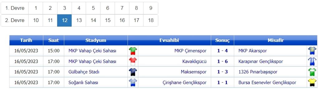 Bursa 2. Amatör Küme de 12. hafta maçları, 16 Mayıs tarihinde oynandı.