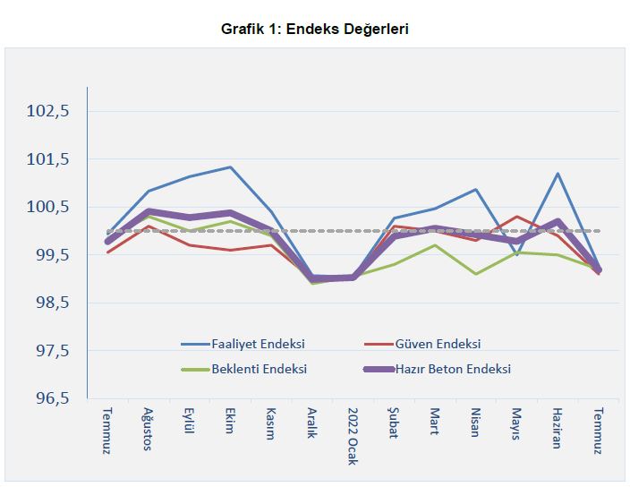 Rapora göre, Haziran ayında yükselen Faaliyet Endeksi, eşiğin üstünde tutunamayarak Temmuz ayında düşüş gösterdi. Yılın başından itibaren düşük görünen Beklenti Endeksi, Temmuz ayında da yükselmedi. Güven Endeksi de Temmuz ayında azalarak kritik düzeyin altına geriledi. Birleşik Beton Endeksi ise her 3 endeksteki azalma neticesinde aşağı yönlü hareket gösterdi.