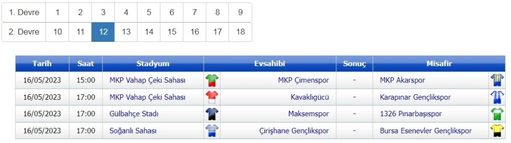 Çimen Spor’un bay geçtiği 11. haftanın ardından 2. Amatör Küme de heyecan, hafta içi oynanacak maçlarla sürecek. 16 Mayıs Salı saat 15.00’da Mustafakemalpaşa derbisinde Çimen Spor ile Akar Spor, saat 17.00’da ise Kavaklı Gücü ile Karapınar Gençlik Spor karşılaşacak.