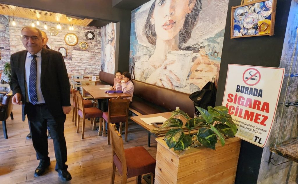 Mustafakemalpaşa Kaymakamı Mehmet Okur, dumansız hava sahasını korumak amacıyla kıraathane ve kafelerde sigara denetimi yaptı.