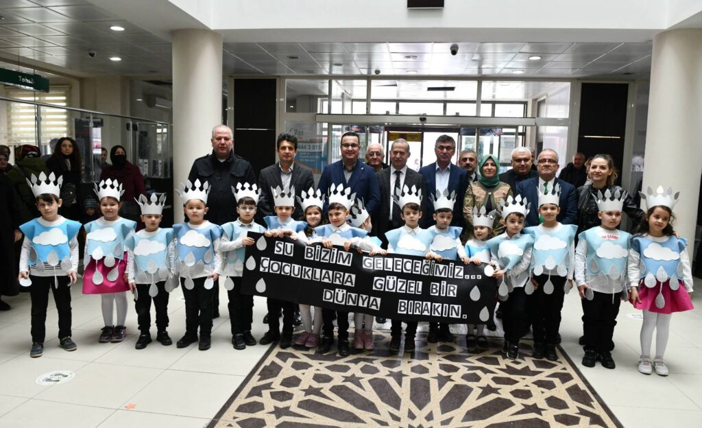 Belediye İklim Değişikliği Müdürlüğü, Milli Eğitim Müdürlüğü ve Tema Vakfı’nın iş birliği ile hazırlanan etkinliklerde özel kostümleri ile sahne alan çocuklar, su tasarrufu ve tüketimine dikkat çekti.