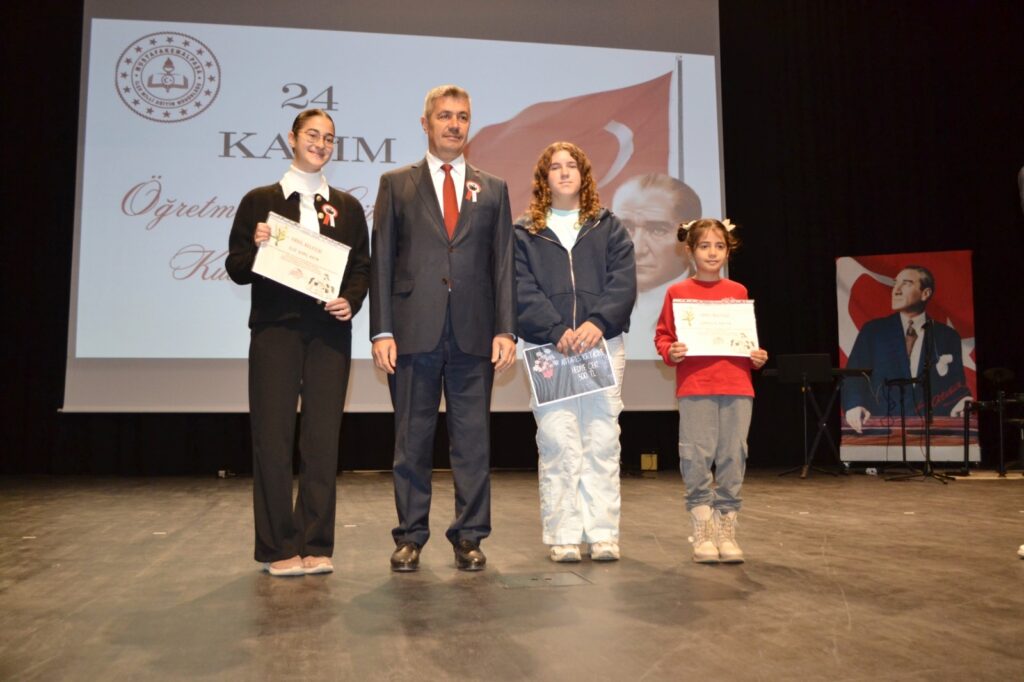 24 Kasım dolayısıyla ilk ve ortaokullar arası düzenlenen resim yarışmasında Karyağmaz İlkokulu’ndan Fatma Miray Güneş, Atatürk Ortaokulu’ndan Elif Zeynep Dedeoğlu ve liseler arası anı yarışmasında ise Sedat Karan Anadolu Lisesi’nden Rümeysa Aydeniz birinciliğe ulaştı.