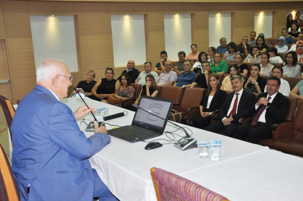 Öğretmenlerin mesleki gelişimlerine katkı sunan etkinlikte konuşan Hayati Akyol, insan yetiştirmede başarı ve kişinin kendisinden hoşnut olma durumunun dengede sürdürülmesi gerektiğini, son dönemde birinci etkenin öncelendiğini söyledi.