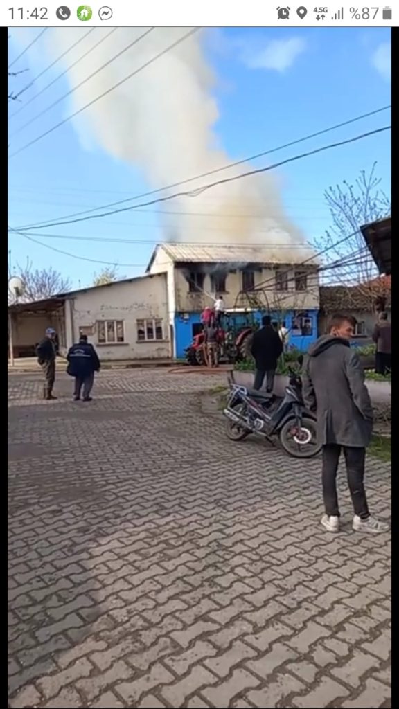 Olayı gören çevredeki vatandaşlar, traktör üstüne çıkarak hortumla alevlere ilk müdahaleyi yaptı.