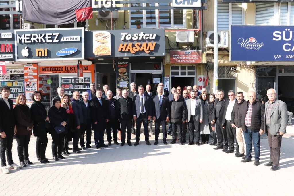 Saha çalışmasının ilk durağı CHP Mustafakemalpaşa Başkanlığı oldu.