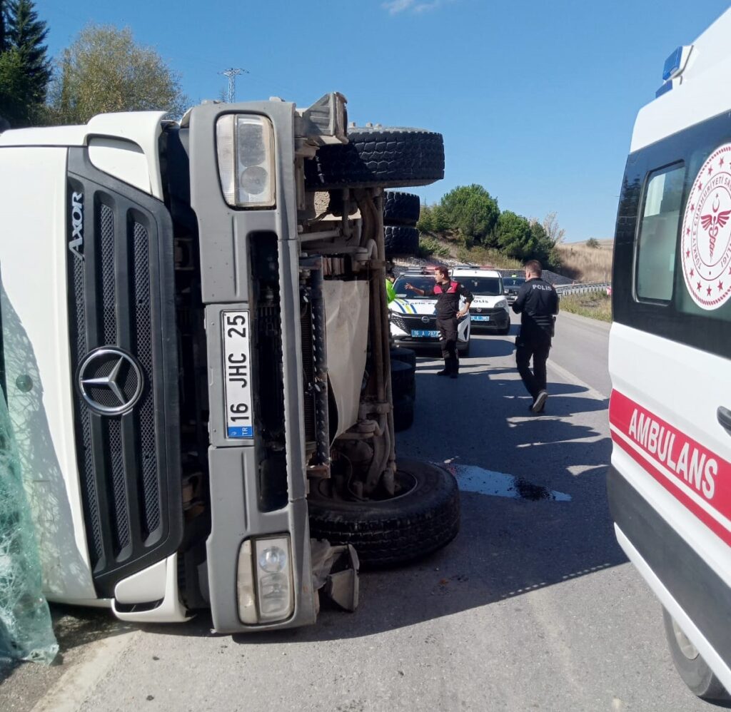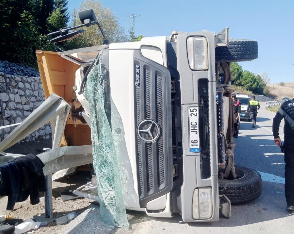 Edinilen bilgiye göre kaza, bugün saat 11.00 sıralarında Mustafakemalpaşa çıkışında yaşandı. 16 JHC 25 plakalı hafriyat kamyonu, Balıkesir istikameti dönüş yönünde ilerlerken yolun sağına yatarak demir bariyerlere devrildi. Kazada yaralanan kamyon sürücüsü Y.Ç. (29), kabin içinde sıkıştığı yerden Mustafakemalpaşa İtfaiye ekipleri tarafından kurtarıldı.
