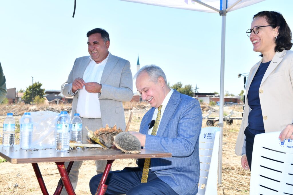 Mustafakemalpaşa Belediyesi Park ve Bahçeler Müdürlüğü koordinesinde, Bursa Büyükşehir Belediyesi Tarım A.Ş. ve Çiftçi Malları Koruma Derneği iş birliğiyle yürütülen projede elde edilen ürün, ihtiyaç sahibi ailelere ayçiçeği yağı olarak geri dönecek.