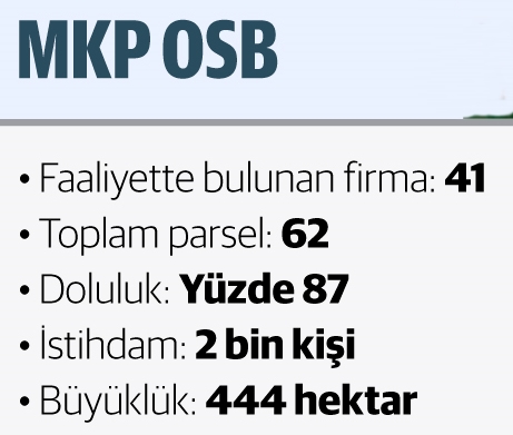 Ülke ekonomisine katkı sağlayan MKP OSB’de konusunda lider olan tekstil, makine, kimya, gıda, metal sanayi gibi farklı alanlarda birçok firma yer alıyor. Yaklaşık 2 bin kişiye istihdam sağlayan MKP OSB’de 207 bin metrekarelik kapalı alanda endüstriyel ambalaj ürünleri, hijyen, sağlık aparatları konusunda faaliyet gösterecek büyük bir firmanın tam kapasite üretime geçmesi ile istihdam sayısının 3 bin 500 kişiye çıkması bekleniyor. Aynı zamanda ilave alan ile birlikte tam doluluğa ulaşılması halinde ise bu sayının 8 bin kişiye ulaşacağı kaydediliyor.