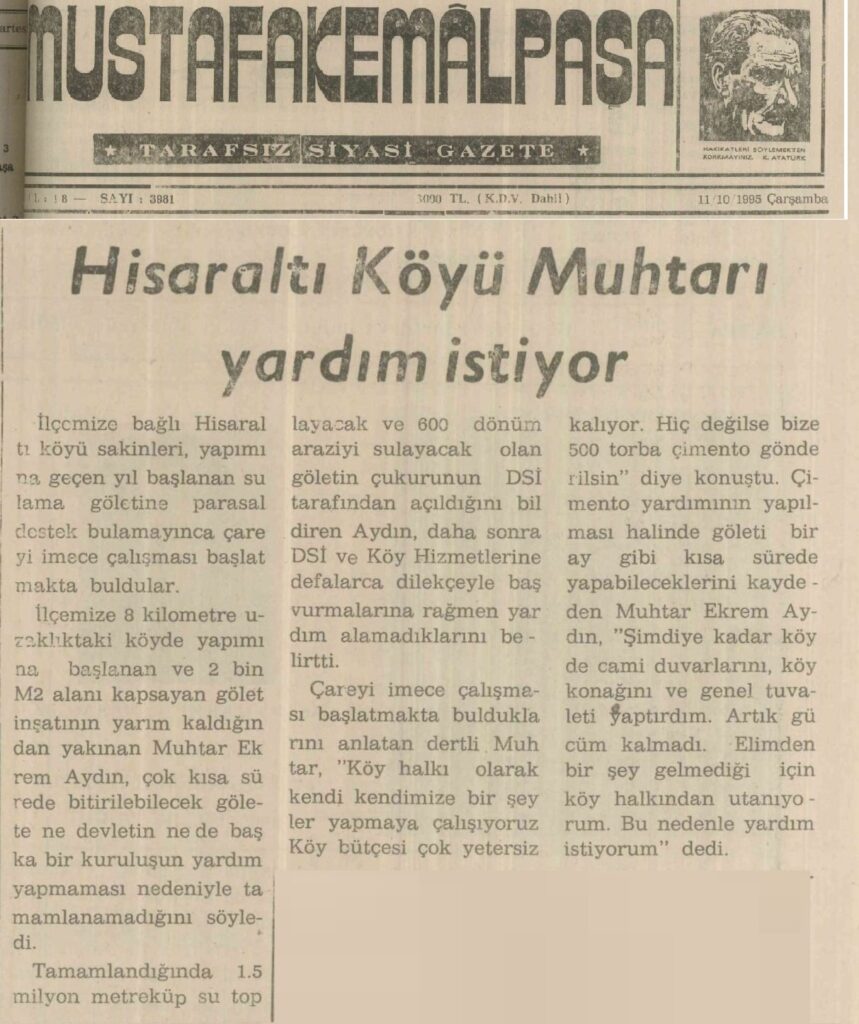 GÖREV YAPAN MUHTARLAR: Hasan Oruç, Seyit Çatal, İzzet Çınar, Mustafa Akın, Mehmet Şahin, İsmail Çatal, Mehmet Duman, Abdullah Okumuş, Ekrem Şahin, Hüsnü Yaman, Seyit Çatal, Mehmet Kütük