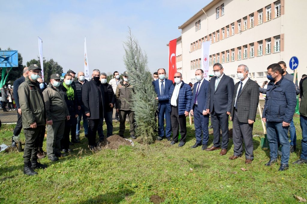 Öğrencilere çevre ve doğa bilinci kazandırmak amacıyla yapılan etkinlikte, protokol üyeleri İbn-i Sina Özel Eğitim Meslek ve Uygulama Okulu öğrencileri ile birlikte fidan dikimi gerçekleştirdi.