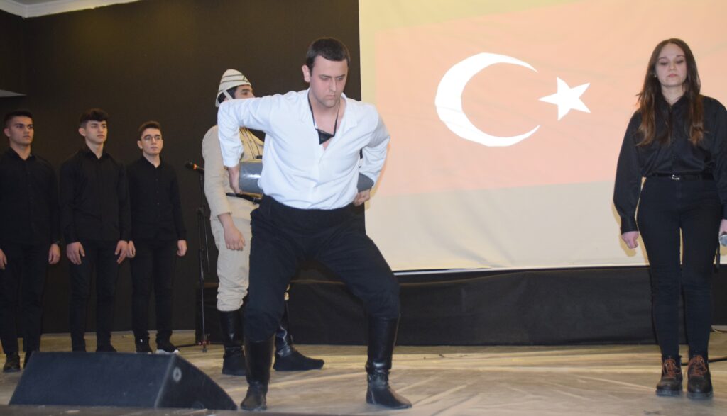 Milli Şair Mehmet Akif Ersoy’un destansı zafer için kaleme aldığı, öğretmenler ve öğrencilerin okuduğu ‘Çanakkale Şehitleri’ne şiirinin sinevizyon gösteriminin ardından ‘Bir Hilal Uğruna’ isimli gösteri sunuldu.