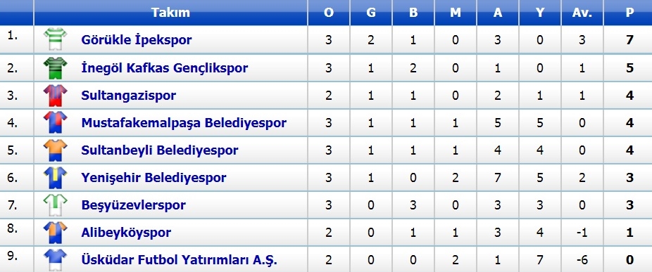 İstanbul temsilcisi Sultangazi ise aynı puanda bulunduğu Mustafakemalpaşaspor Belediye’ye karşı artı 1 averajla 3. sırada yer alıyor.