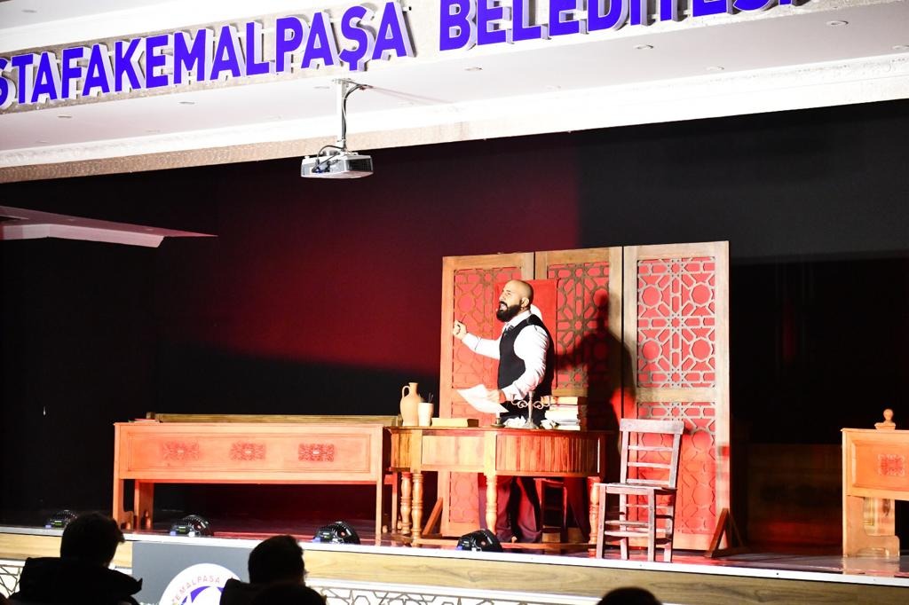 Bursa Büyükşehir Belediyesi Şehir Tiyatrosu tarafından İstiklâl Marşı’nın kabulünün 100’üncü yılı münasebetiyle Mustafakemalpaşa’da sahnelenen ‘İstiklâl Yolu Mehmet Akif’ adlı oyun, izleyenleri hem duygulandırdı hem gururlandırdı.