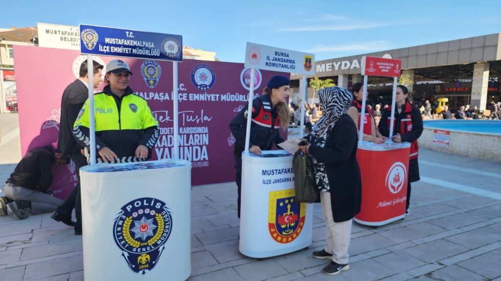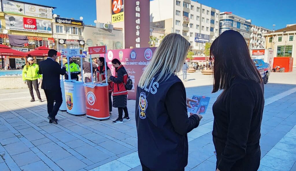 Mustafakemalpaşa’da ‘25 Kasım Kadına Yönelik Şiddete Karşı Uluslararası Mücadele Günü’ kapsamında, güvenlik ve sosyal hizmet kurumları öncülüğünde bilgilendirme çalışmaları yapıldı.