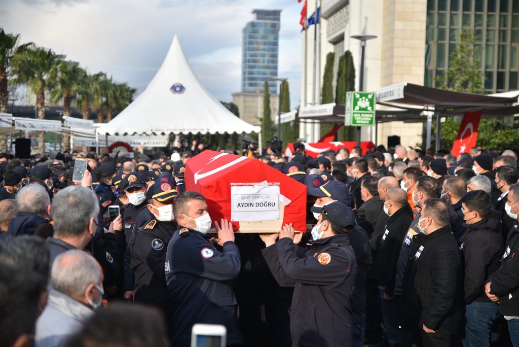 Büyükşehir Belediyesi’nde görev yapan 14 yıllık itfaiye eri 37 yaşındaki Sinan Amil, 13 yıllık itfaiye çavuşu 39 yaşındaki İsmail Kaya, 4 yıllık itfaiye destek personeli 37 yaşındaki Yunus Akşit ve 4 yıllık itfaiye destek personeli 42 yaşındaki Aydın Doğru için belediye binası önünde cenaze töreni düzenlendi.