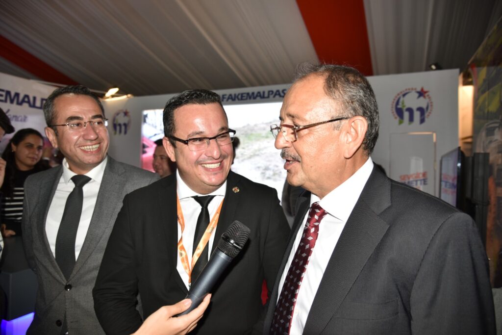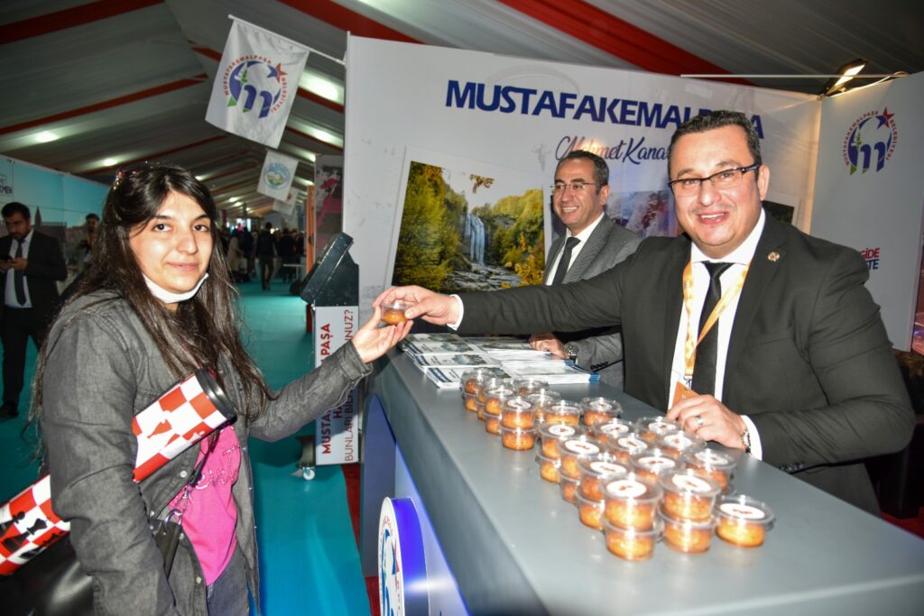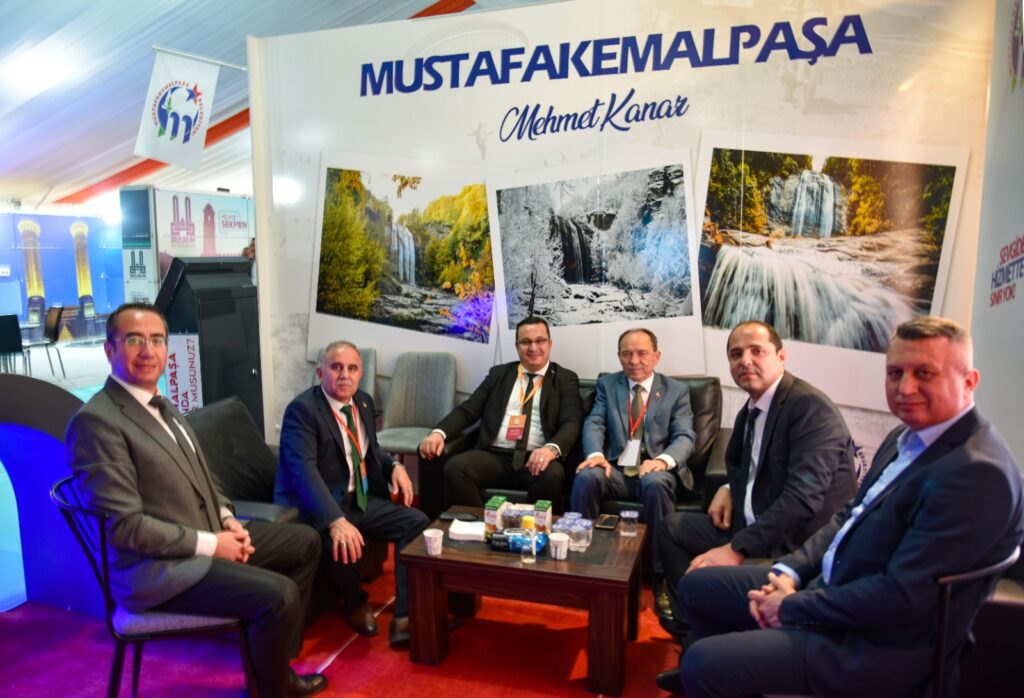 Mustafakemalpaşa Belediyesi standını ziyaret eden AK Parti Genel Başkan Yardımcısı ve Yerel Yönetimler Başkanı Mehmet Özhaseki; “Başkanımız atom karınca, onu tutmak imkansız” dediği Belediye Başkanı Mehmet Kanar’a spora yönelik çalışmaları nedeniyle başarı ödülü verdi.